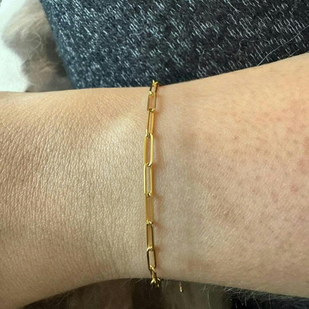 Clara - our ultra-lightweight paperclip chain bracelet embodies quiet luxury with its clean, geometric links and whisper-light feel that you'll forget you're wearing.